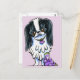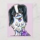 Ilustração de um queixo japonês preto e branco com um brinquedo de dragão. Tinta e lápis coloridos. (c) Andie 2014.
