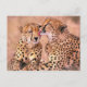 Cartão de animal mostrando um par de chitas na África do Sul. A chita (Acinonyx jubatus) é um grande felino que habita a maior parte da África e partes do Irã. A chita pode correr mais rápido do que qualquer outro animal terrestre, tão rápido quanto 112 a 120 km/h. Em curtos períodos, cobrindo distâncias de até 500 m, e tem a capacidade de acelerar de 0 a 100 km/h em três segundos. Sua principal estratégia de caça é correr atrás de presas rápidas, como várias espécies de antílopes e lebres. Quase todos os aspectos da anatomia da chita evoluíram para maximizar seu sucesso na perseguição, resultado de uma corrida armamentista evolutiva com sua presa. Devido a essa especialização, no entanto, a chita está mal equipada para se defender de outros grandes predadores, sendo a velocidade seu principal meio de defesa.