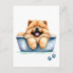 Cachorro bonito ilustra um cachorro feliz e fofo cão Chow Chow em uma banheira. Excelente para amantes de cães.