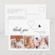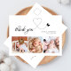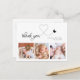 Crie seu próprio cartão postal de agradecimento de baby shower com colagem de fotos para agradecer amigos e familiares por receberem seu pequeno! O design elegante e minimalista apresenta uma colagem de três fotos personalizadas na parte inferior e tipografia elegante na parte superior com sua mensagem de "obrigado" em uma fonte cursiva sofisticada e as informações do seu bebê em uma fonte simples e moderna. Há também um pequeno coração feito no ar por uma borboleta. No verso, há uma mensagem personalizável com os nomes dos membros da sua família e seu endereço de devolução em tipografia moderna. Torne-o único substituindo o texto e as imagens clicando no botão "Personalizar". Este cartão de agradecimento é neutro em termos de gênero e perfeito para apresentar um menino ou uma menina!