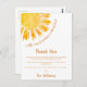 Este cartão de agradecimento de chá de bebê apresenta o texto "Um pequeno raio de sol está quase chegando!" com um sol amarelo em aquarela.