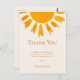 Este simples cartão de agradecimento de chá de bebê é decorado com um sol em aquarela amarela e tipografia simples em um fundo suave creme.