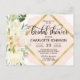 Simplesmente elegante design de buquê rústico floral pintado à mão em aquarela (aquarela) verde, verdejante, rosa bege, champanhe, baunilha, marfim, flores brancas creme em fundo branco e lavagem de aquarela rosa com moldura de folha de ouro falso. Convites delicados de chá de noiva de casamento para tema de casamento de primavera ou verão. Parte de trás do cartão tem nome da noiva. Veja toda a coleção de papelaria de casamento.