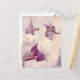 vintage feira pintura de fadas de chuva chuva chuva chuva chuva fazer chuva enquanto se sentam sobre grandes nuvens brancas fluffy no céu vestindo púrpura, mauve, e manchas liláticas com capuzes e segurando um objeto metálico plano redondo com chuva caindo dele em chuva pesada. ilustração de aquarelas bonitas e bonito com cabelos varridos pelo vento e manchas capuzes estão ocupadas nuvens de terra. linda e doce ilustração deliciosa em púrpuras, mauves e lilases.