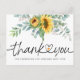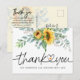 Obrigado pelo chuveiro de bebê lindamente projetado em escrita com cartão postal de coração conectado com greenery de eucalipto de girassol aquarela. Clássica e moderna e tipografia de escrita é usada. No verso do cartão postal com girassol fantasma e mensagem personalizável ou exclua o texto para mensagens manuscritas.