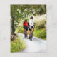 Dois ciclistas de corridas de estradas que desfrutam das faixas rurais do País de Gales. Aquarela.