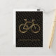 Bicicletas de Ouro Elegante de Padrão de Bicicleta Preto e Dourada no Fundo Preto e Parabéns de Texto Personalizados, Cartão-postal, você pode alterar todo o texto