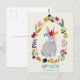 Cartão Postal cinza de coelho páscoa desenho floral