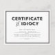 Se você fez algo errado e precisa pedir desculpas, faça isso com um cartão postal oficial do Certificado de Idiocy. Espaço para personalizar na frente com seu nome e assinatura e muito espaço nas costas para um pedido de desculpas mais demorado. Disponível em outros formatos e cores.