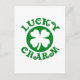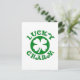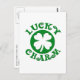 Círculo verde e branco emblema com um encanto de sorte em texto circular redondo. Quatro "shamrock" de trevo de folha para a sorte dos irlandeses! Copyright © www.CuteComfy.com