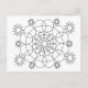 Estrela com onze pontas no centro. Duas fileiras de círculos (Pequenos por dentro, maiores por fora) rodeiam a estrela central. Quatro estrelas grandes e seis estrelas pequenas orbitam em torno dos padrões de círculo. Colorir com canetas de tinta ou tintas.