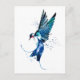 um trabalho de arte de bicho-aquarela tradicional com uma ave andorinha voando em azul surreal e cor turquesa num cartão-postal.