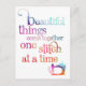 Coisas bonitas se juntam um ponto de cada vez. Quer você ame costurar ou colar, esse ditado fabuloso é perfeito para todas as ocasiões. design de tipografia multicolorida bonito com uma máquina de costura no canto.