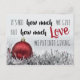 Este cartão-postal inspirador de Natal apresenta a imagem de um ornamento de bola vermelha brilhando com uma citação adorável que diz "Não é o quanto damos, mas o quanto amamos em dar". O texto está em uma fonte moderna, preta e vermelha.