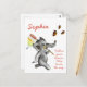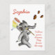 Cartão postal bonito com uma ilustração feita a aquarela pintada à mão de um elefante perseguindo borboletas bonito com uma rede colorida arco-íris. Também apresenta a citação inspiradora sobre seguir seus sonhos, "Siga seus sonhos. Eles sabem o caminho". Você também pode adicionar um toque pessoal adicionando o nome do destinatário acima da ilustração.