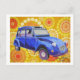 Citroeno clássico 2cv; retro anos 70 sente nesta imagem. Do trabalho de arte pintado à mão por Hot Custard! Este postal ficaria adorável em uma pequena moldura.