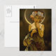 Mulher bonita com flores no cabelo e pontas dos dedos nos lábios, envolta em tecido estrelado, com ombros nus, em pé no brilho da lua crescente. Litografia Art Nouveau de 1902 do artista tcheco Alphonse Mucha (1860-1939), intitulada "Clair de Lune", de "Les Etoiles".