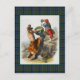 Cartão postal com uma ilustração de aquarela vintage, limpa digitalmente e melhorada, do artista escocês Robert Ronald McIan, datada de 1845. Enquadrado com o Clan MacMillan Hunting tartan, um padrão tradicional de xadrez em verde, azul real, vermelho e amarelo. Imagem de tartan digital criada por Susan Wallace de Plaidwerx utilizando a contagem de fios fornecida pelo Registro Escocês de Tartans.