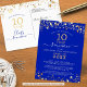 Convite postal de reunião de classe moderna e elegante para qualquer reunião de ano (mostrada para 10 anos) com estrelas e luzes douradas, tipografia elegante de script manuscrito e um fundo de cores personalizado (mostrado em azul real) que você pode mudar para a cor da sua escola ou para a cor do tema da festa. Todo texto é editável para fazer o seu. ASSISTÊNCIA: para obter ajuda sobre modificação ou personalização do design, alteração de cor ou transferência do design para outro produto ou para coordenar itens, entre em contato com o designer ANTES DE ENCOMENDAR, por meio da guia MENSAGEM de bate-papo Zazzle abaixo ou envie um email para makeitaboutyoustore@gmail.com.