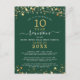Convite postal de reunião de classe moderna e elegante para qualquer reunião de ano (mostrada para 10 anos) com estrelas e luzes douradas, tipografia elegante de script manuscrito e um fundo de cores personalizado (mostrado em verde) que você pode mudar para a cor da sua escola ou para a cor do tema da festa. Todo texto é editável para fazer o seu. ASSISTÊNCIA: para obter ajuda sobre modificação ou personalização do design, alteração de cor ou transferência do design para outro produto ou para coordenar itens, entre em contato com o designer ANTES DE ENCOMENDAR, por meio da guia MENSAGEM de bate-papo Zazzle abaixo ou envie um email para makeitaboutyoustore@gmail.com.