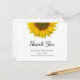 Classe de Graduação de 2025 Obrigado cartão postal, com um girassol amarelo e design de script. Com a inscrição em preto personalizável, você pode adicionar suas próprias informações. Uma adição rústica ao marco do seu Formando.