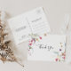 Este clássico obrigado floral selvagem que você faz é perfeito para um casamento rústico. A design apresenta flores silvestres brancas, amarelas, roxas e brancas com folhagem em fundo de rosa e aquarela verde. Personalize a parte traseira do cartão postal, incluindo seus nomes, endereço de devolução e um obrigado da mensagem. Ou deixe a seção modelo da mensagem do obrigado do do para redigir algumas palavras em cada placa depois que elas chegarem. Estas cartas podem ser usadas para um casamento, chá de panela, ou quando quiser dizer obrigados.