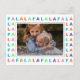 Cartão de Férias Único, clássico, de moda, bonito e decorativo. Feriados Felizes Gratos saudando texto e espaço para personalizar ou personalizar com uma foto, nome da família (ou nomes individuais) e mensagem de sua escolha. Enquadrado pela colorida arte das palavras FA LA num fundo branco.