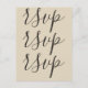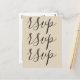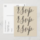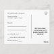 Este sofisticado design de cartão postal R.S.V.P apresenta a mensagem "rsvp" na frente. Ele também apresenta um formulário de RSVP personalizado no verso, juntamente com um endereço personalizado ao qual as placas de RSVP completadas seriam enviadas. Cartões RSVP como este podem ser usados para descobrir quem vai participar de uma chá de fraldas, de uma festa de formatura, de uma festa de aniversário de casamento, ou de alguma outra celebração.