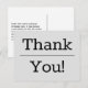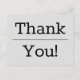 Este design de cartão postal de agradecimento clássico e tradicional apresenta a mensagem "Obrigado!" na frente, juntamente com uma mensagem personalizável no verso. Pode ser usado para mostrar apreço a alguém que fez algo simpático.