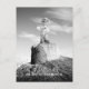 Postcard - Clown Tournesol on top of the castle ruin in the village. Photo montage from the series 'In the village'.
