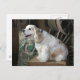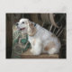 Um lindo branco com pontos castanhos Cocker Spaniel fotografado em um cenário rústico. Para todos os amantes da raça, isso vai fazer um presente maravilhoso para qualquer ocasião.