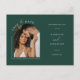 Esta opção para salvar a data noivado anúncio convite postcard apresenta uma caligrafia elegante e uma letra de tipografia simples com um título de forma de arco e fotografia num fundo verde esmeraldo e Código QR. A simplicidade desta design adiciona um toque de elegância ao seu casamento, exceto os cartões de convite. Funciona bem com muitos temas de casamento e definitivamente um excelente extra para o seu casamento. Basta personalizar os nomes e o texto em alguns passos fáceis e personalizar o cartão-postal do convite com sua foto do casal feliz e substituir o Código QR pelo seu no verso para dar um toque pessoal agradável ao seu cartão-postal. Nota: A forma de arco de "Salvar a Data" e o roteiro elegante de caligrafia de "e" e o texto de "Convite Formal a Seguir" na frente E "Salvar a data" no verso juntamente com as linhas na frente e no verso e outros elementos gráficos de trabalho de arte não podem ser editados, movidos ou apagados, Eles são fixos.