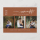 Este cartão postal, que salva a data, apresenta um elegante estilo moderado e minimalista de uma tripla colagem fotográfica com uma caligrafia moderna da frase "Salvar a Data" e fontes elegantes de Serif para uma visão minimalista e moderna e limpa sobre um fundo de terracota, que é uma bela maneira de informar sobre o seu próximo casamento. Anuncie à sua família e amigos que vai casar com este cartão postal, para salvar o cartão postal e adicionar um toque pessoal com belas fotografias de si e da sua próxima metade. A simplicidade desta design adiciona um toque de elegância ao seu casamento. Funciona bem com muitos temas de casamento e definitivamente um excelente extra para o seu casamento. Basta personalizar os nomes e o texto em alguns passos fáceis e personalizar o cartão postal com sua foto do casal feliz e substituir o Código QR pelo seu. Observe que o texto "Salvar a data" juntamente com outros trabalho de arte gráficos e elementos não podem ser editados, alterados ou excluídos. Se precisar alterar a cor, você pode personalizar o cartão-postal. Você pode personalizar e personalizar o cartão postal para ajustado das necessidades de seu evento de casamento e clicar em personalizar o cartão postal.