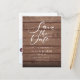Este cartão de save-the-date rústico apresenta um elegante save-the-date em escrita acima dos seus detalhes em tipografia elegante sobre um fundo de painéis de madeira rústica. O verso tem detalhes adicionais do save-the-date, incluindo sua foto especial e código QR do site do casamento, com seu endereço de retorno e espaço para o endereço do destinatário. Projetado por Thisisnotme