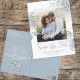 Este belo design guarda um código QR de casamento com o website online para mais informações, uma fotografia guardada simples, com folhagem floral azul empoeirada, um modelo de 1 fotografia, um casal elegante moderno, uma fotografia engajada, uma folha de flores botânicas de casamento, fotos noivados com cartão-postal, com uma escrita de pincel de caligrafia moderna, uma na moda minimalista e mesquística, script de caligrafia, basta salvar a data com modelo de rosa floral elegante