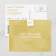 Um lembrete de encontro simples e elegante em cartão postal com um logotipo de monograma de moda moderna em um fundo de aquarela pastel amarelo dourado. Personalize este design profissional minimalista adicionando suas informações de contato e código QR exclusivo no verso.