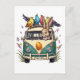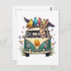Cartão Postal Coelhinho de Páscoa em um Ônibus com Amigos de Pás