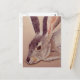 Deitado em uma reposta inquieta, o coelho guarda um olho para o perigo. A artista da vida selvagem Kathie Miller capturou amorosamente todos os detalhes nesta renderização colorida a lápis.