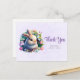 Cartão de agradecimento com uma ilustração adorável. Um pequeno coelho bebê marrom e branco. Cercado por lindas flores de primavera.
