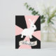 Coelho Branco com faixa de texto de coelho branco por baixo e fundo de raio preto e rosa.