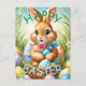 Cartão Postal Coelho da Páscoa adorável em cesto com ovos