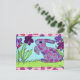 Este coelho querido de flor roxa está farejando alegremente um pedaço de flores roxas fragrantes que ela descobriu nesta manhã de primavera adorável. Toda a cena é colocada contra um céu azul sem nuvens e uma fronteira detalhada com flores que combinam com o coelho.