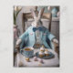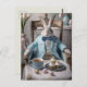 Cartão Postal Coelho páscoa num casaco azul e gravata arco