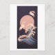Cartão Postal Coelhos com Lua cheia e ondas