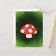 Uma bela ilustração de um cogumelo vermelho visto. O fundo é uma textura verde de meteoros.