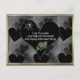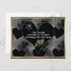 Uma fina linha branca forma um coração negro em preto com uma aranha e um crânio que pegou há muito tempo, uma rosa com folhas verdes e palavras brancas que diz "Eu gosto de chocolate, longas caminhadas na praia, e brincando com coisas mortos.