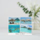 O cartão com uma colagem de quatro paisagens em Bora Bora com lotes da água da grande lagoa de turquesa com tubarões e de recursos do overwater com as fotos com uma borda e brancas torcidas como ele está fraco e com o texto: "Bora Bora". É uma grande lembrança das férias.