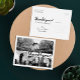 Personalize esta Na moda Photo Obrigado Postcard, projetada com o moderno guião de escrita manual divertido bold Texto preto Obrigado! a branco. Substitua a colagem de quatro imagens de modelo com suas 4 fotos favoritas. Uma das imagens é uma ampla foto panorâmica horizontal e as outras três são menores. Para obter melhores resultados, use fotos de alta resolução. Também mude todas as informações de modelo de ambos os lados com as suas. Esta design tem um texto: "Obrigado por partilhar no nosso dia especial." Você pode mudar as palavras com suas próprias palavras.