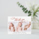 Rosa de Caligrafia Elegante Moderna, Roteiro Dourado 3 Foto Colagem de Crianças Recém-Nascida, Obrigado Cartão-Postal De Anúncio De Nascimento. Apresenta um belo texto "obrigado você" em um roteiro de letra de letras maiúsculas e minúsculas, escrito à mão, em cor rosa-rosa-claro, folha de ouro FAUX em branco. Estão incluídas as estatísticas pré-feitas de mensagens pessoais e natalidade com o nome do bebê. Excelente para a menina. Fácil de personalizar com sua foto de bebê e detalhes.