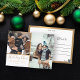 Este cartão de feriado moderno tem lugar para duas fotos e é escrito em um roteiro escrito à mão. Há falsas bordas douradas ao redor das fotos e da parte de trás do cartão-postal.
